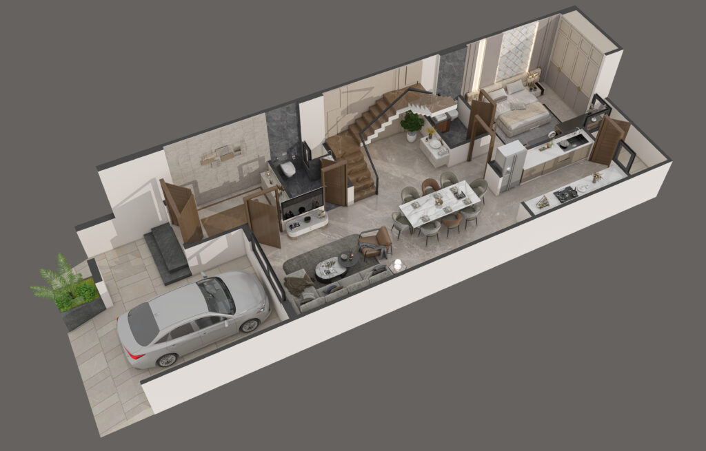The design of villas focuses on spatial harmony and ventilation. Every square inch is optimized to ensure a seamless flow between indoor living and outdoor spaces. Large floor-to-ceiling windows maximize natural light.